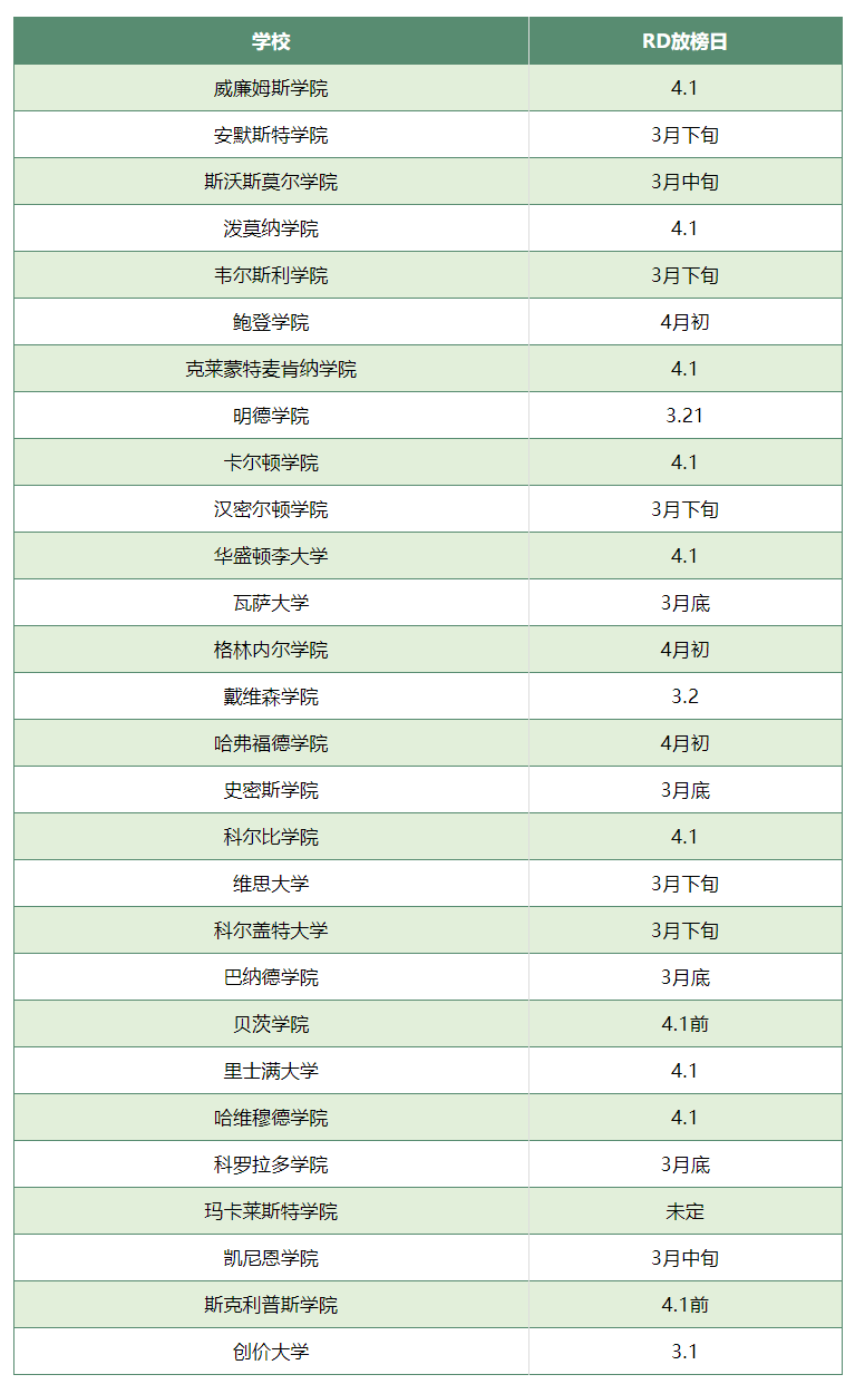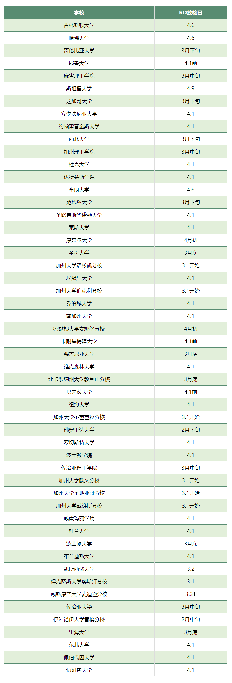 今天为大家整理了Top50综合性大学和Top30文理学院最新的放榜时间,RD放榜时间主要集中在3-4月份。供大家参考,个别学校的放榜时间可能后续会有所调整。