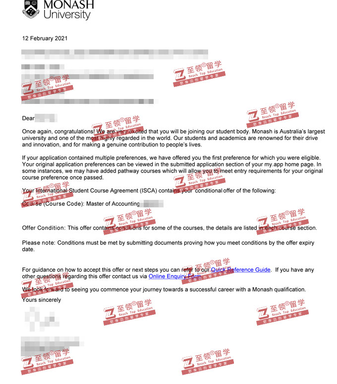 录取结果:Monash University,Master of Accounting莫纳什大学会计硕士录取