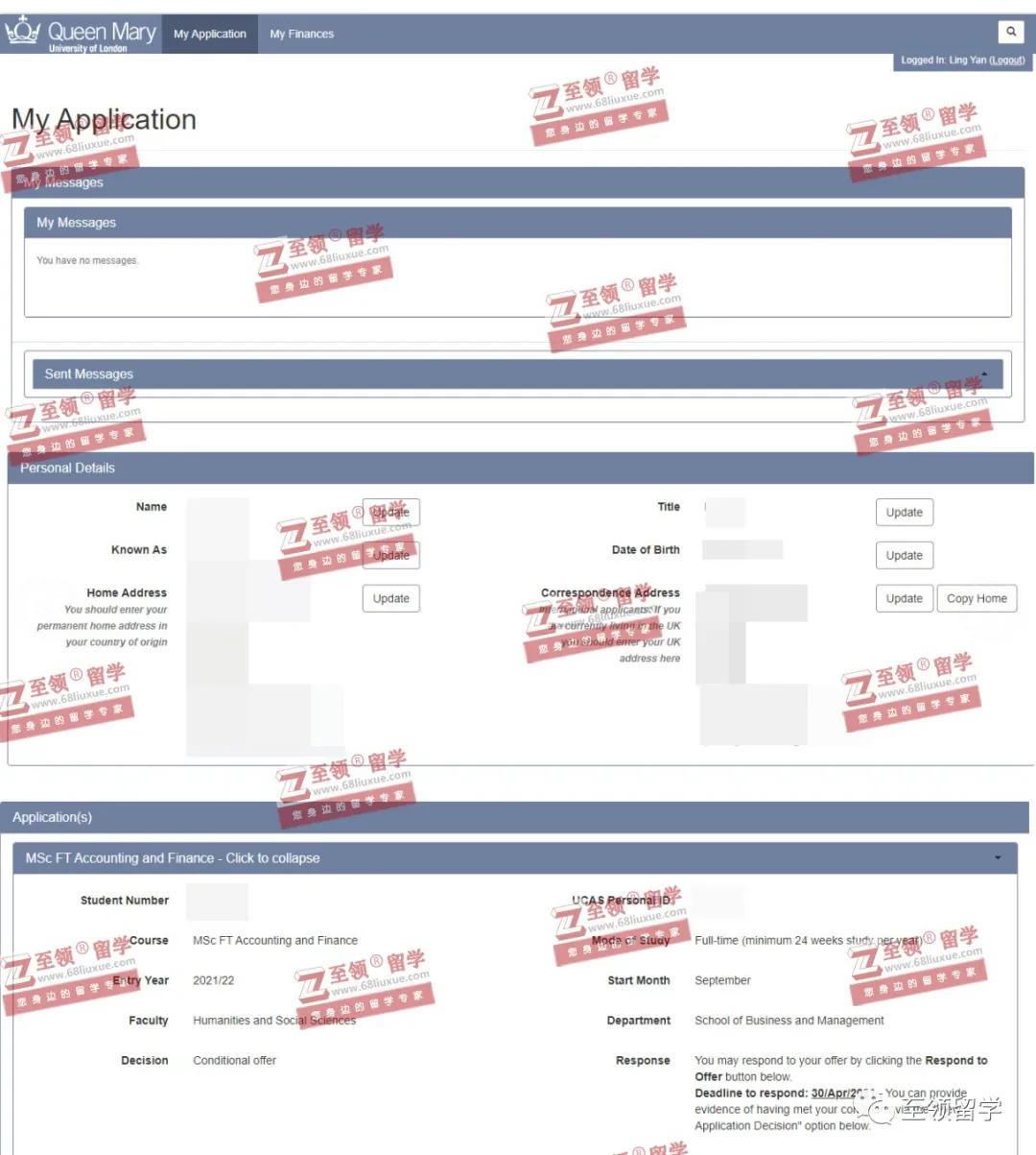 录取结果:Queen Mary University of London,Accounting and Finance MSc伦敦大学玛丽女王学院会计与金融硕士录取