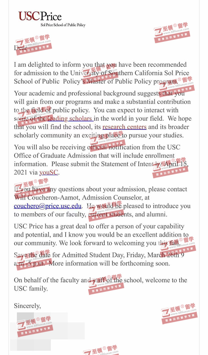 录取结果:USC,Master of Public Policy南加州大学公共政策硕士录取