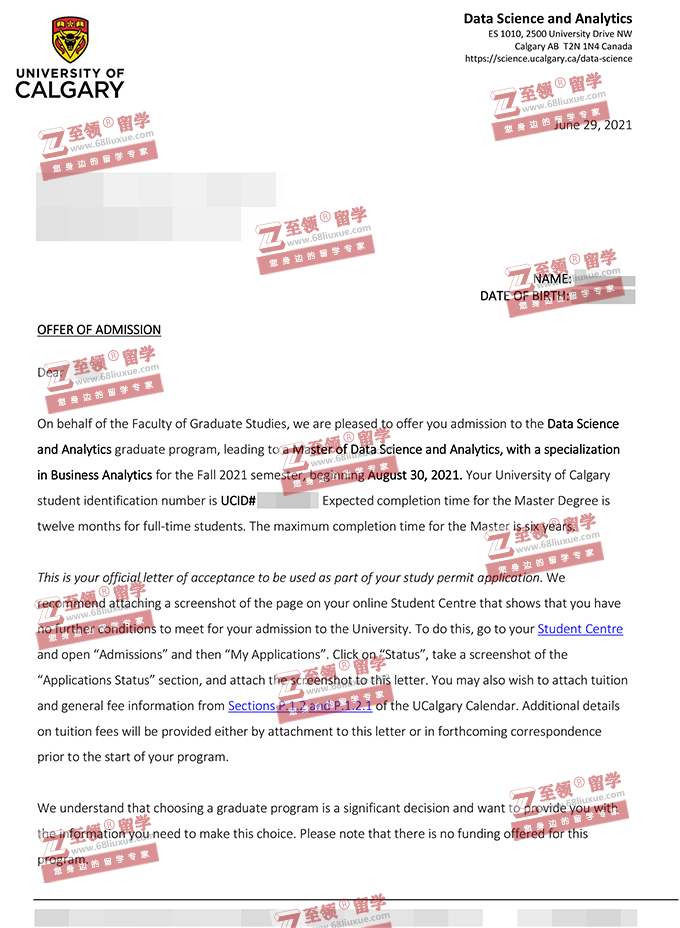 录取结果:The University of Calgary,Master of Data Science and Analytics (MDSA)卡尔加里大学数据科学与分析硕士录取