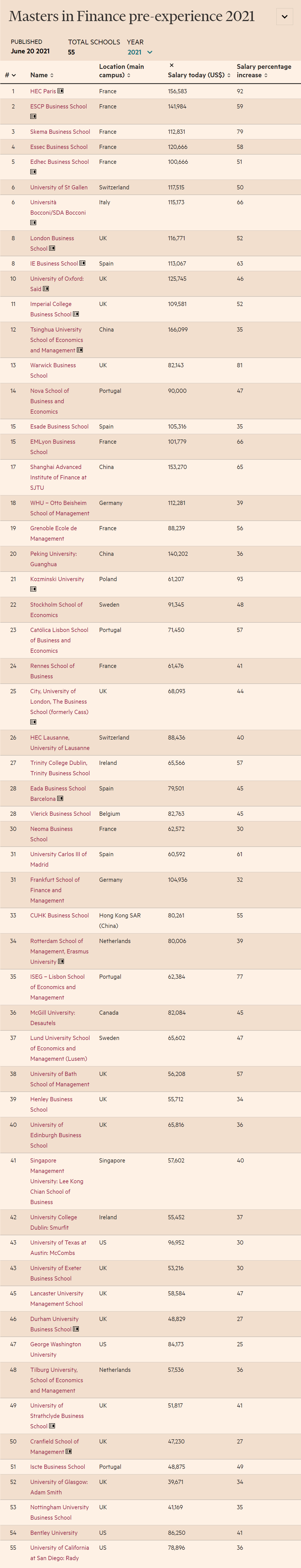 作为全球金融领域极具权威性的全球媒体之一,《金融时报》每年所发布的金融硕士排行榜都备受全球学术界及企业界关注,而这一排名也是各大金融企业招聘的重要源依据之一。