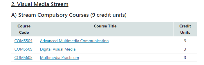 项目于2016年开设Digital Media, Media Data Analytics和Visual Media三个分支供学生选择,学生可根据未来职业规划以及个人兴趣选择分支方向进行深入学习。