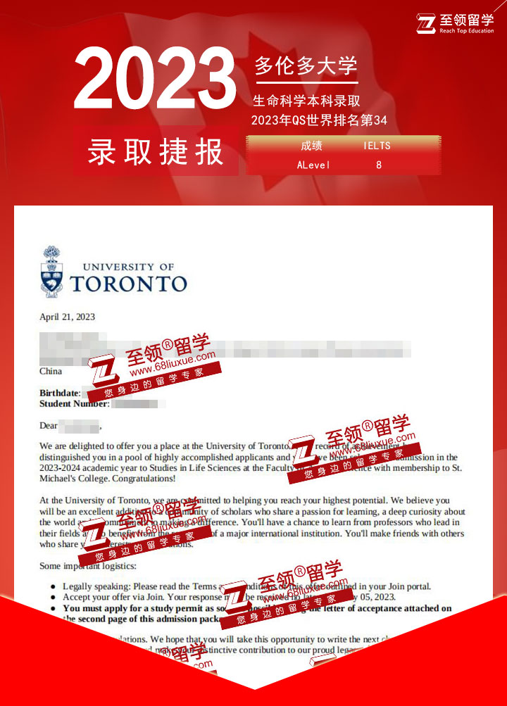 多伦多大学是加拿大各项排名稳居第1的大学,也是全球最顶尖的大学之一,2023年QS世界排名第34。声誉如此高的院校,其录取难度也相当大。文书材料中突出学生良好的社会责任感、较强的沟通能力和团队精神。在申请提交两个多月后,G同学顺利获得多伦多大学录取。
