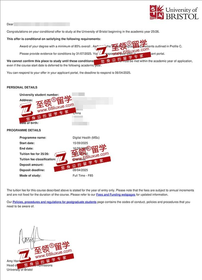 录取结果:布里斯托大学数字健康硕士录取