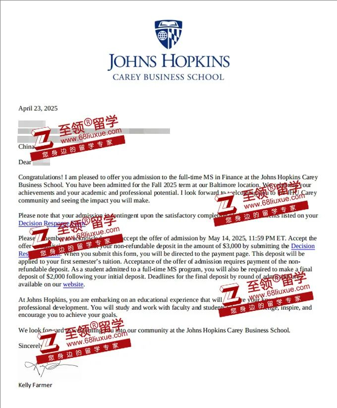 录取结果:约翰霍普金斯大学金融硕士录取