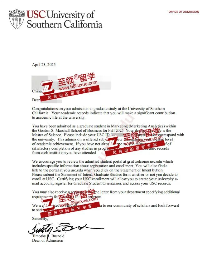 录取结果:南加州大学市场分析学硕士录取