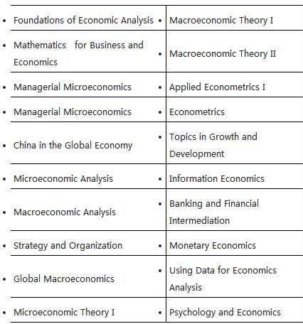 接下来我们看看经济学硕士开设的课程,众所周知,不同于香港大学经济学硕士的实用性、应用性,香港科技大学的经济学以理论功底深厚、理论知识扎实且要求严格闻名,经济系的很多教授来自北美名校,在课程设置方面也可以看出,以2014-2015学年为例: