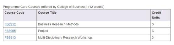 Economics,应用经济学硕士。从这个名称我们也能够看出,区别于香港大学和香港科技大学,城大的授课型经济学硕士项目从名称上就冠以应用开头,强调应用性。在1学年中,要求完成30个学分的课程,其中一半为必修课。