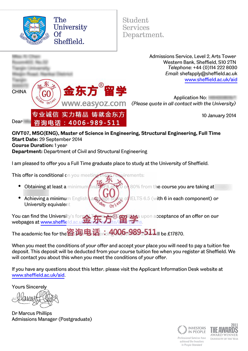 谢菲尔德大学(The University of Sheffield)位于英国谢菲尔德市,世界百强名校,是英国最著名的“红砖大学”之一,并且是有着英国常春藤之称的英国名校联盟“罗素大学集团”成员。作为英国最顶尖的老牌名校之一,谢菲尔德大学以其卓越的教学质量与科研水平而享誉全球,共培养出了5位诺贝尔奖获得者,素来是英国最受学生欢迎的世界著名大学。