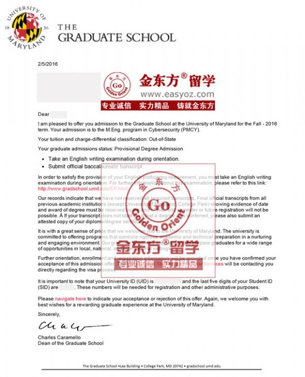 录取结果:马里兰大学帕克分校,MS in Cybersecurity(信息安全硕士)