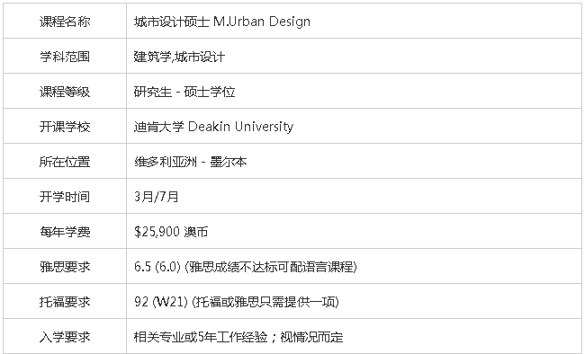 以上就是澳洲迪肯大学城市设计硕士专业的相关介绍,希望能给有去澳洲留学计划的同学有所帮助, 如果您还有什么关于留学的问题或疑问,欢迎与金东方留学在线留学专家进行咨询,一定会为您做最详细的解答。欢迎拨打免费咨询热线:400—6989511