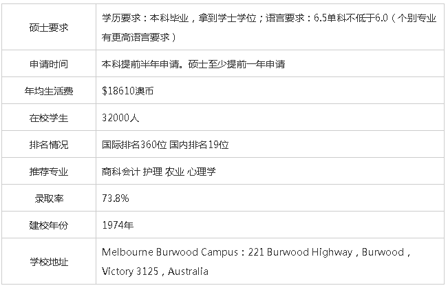 迪肯大学(Deakin University)位于澳大利亚维多利亚州,是一所建立于1974年的由政府资助的大学。该大学提供学士、硕士、博士课程,专业训练及工业员工培训,共有七万多名学生修读学位或非学位课程,其中包括二万名接受专业训练的学生,是澳大利亚学生规模最为庞大的大学之一。