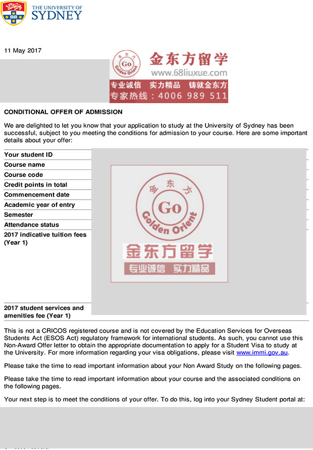 录取结果:University of Sydney(悉尼大学),Master of Medicine (Ophthalmic Science) Con(医学硕士(眼科科学))