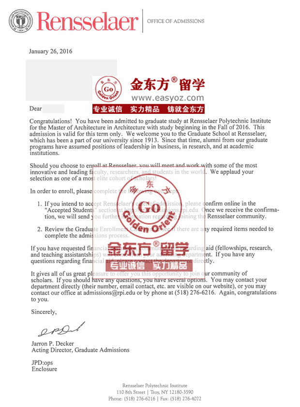 录取结果:伦斯勒理工学院建筑学专业硕士