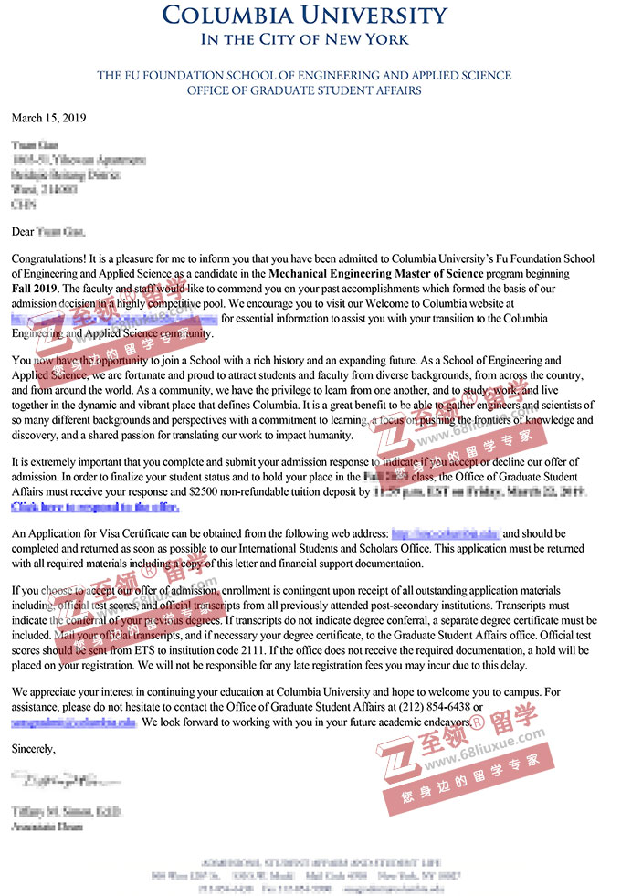 通过G同学与至领留学团队老师们的齐心努力配合,G同学获得美国TOP3哥伦比亚大学录取,真是可喜可贺!