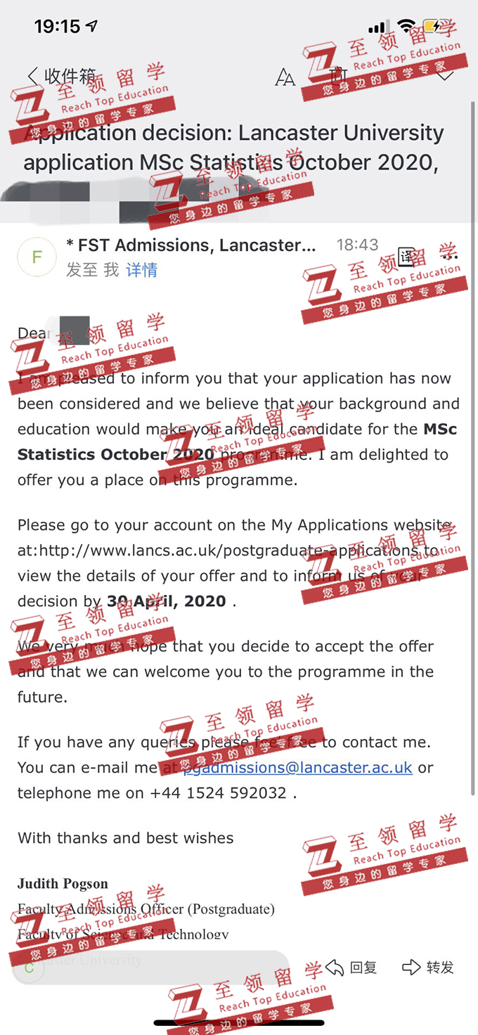 录取结果:lancaster University,MSc Statistics兰卡斯特大学统计硕士录取
