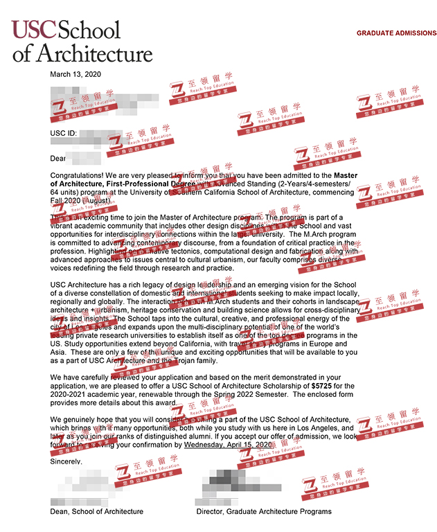 录取结果:USC,Master of Architecture,奖学金$5725,南加州大学建筑学硕士录取
