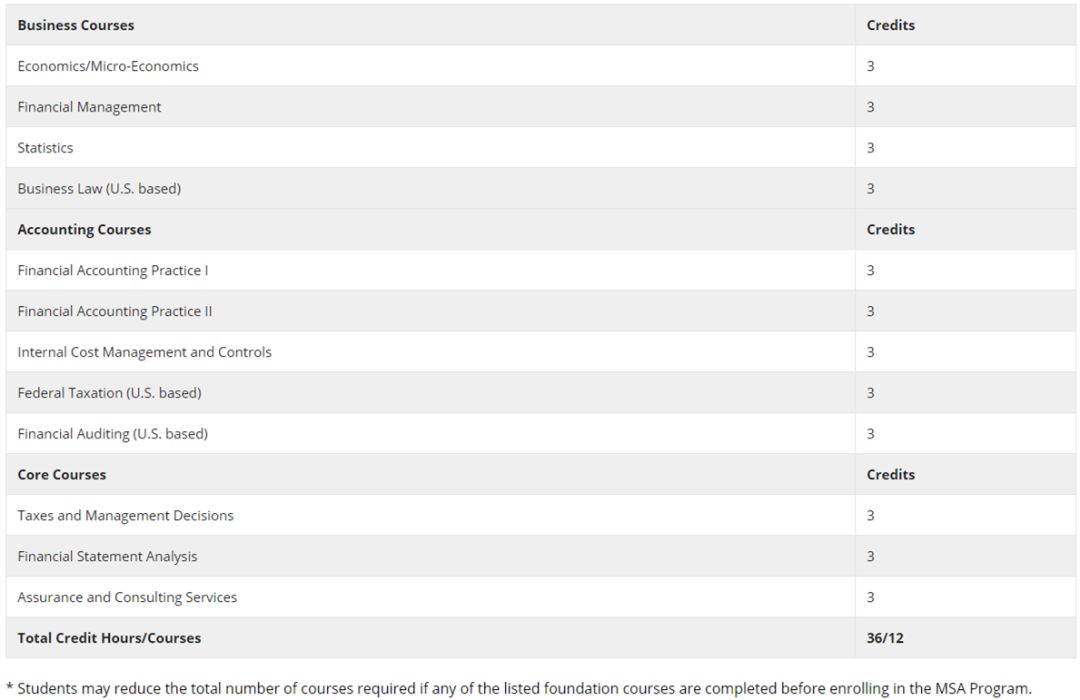 BC MSA 项目针对会计本科和非会计本科的课程有所不同,会计本科专业的学生可选择6月或9月入学,项目时长12个月,共需要修30个学分。具体课程设置如下: