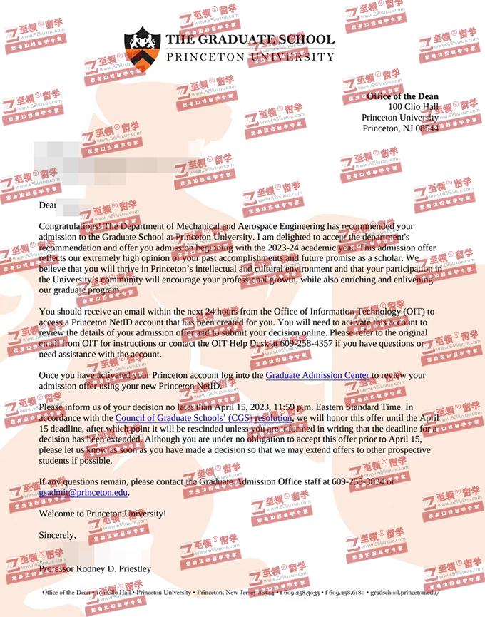 录取结果:Princeton University,Ph.D in Mechanical & Aerospace Engineering 普林斯顿大学机械工程与航天工程PHD