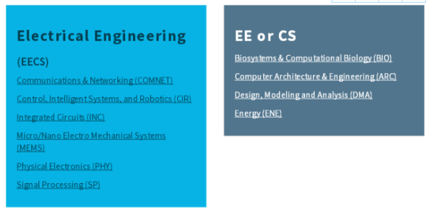EECS研究方向设置如下图,怎么样?有你心仪的方向吗?