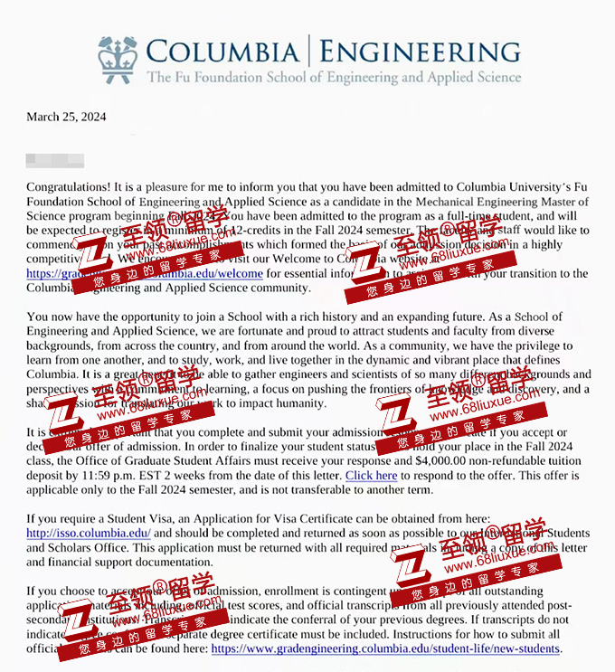 录取结果:Columbia University,MS in Mechanical Engineering 哥伦比亚大学机械工程硕士录取