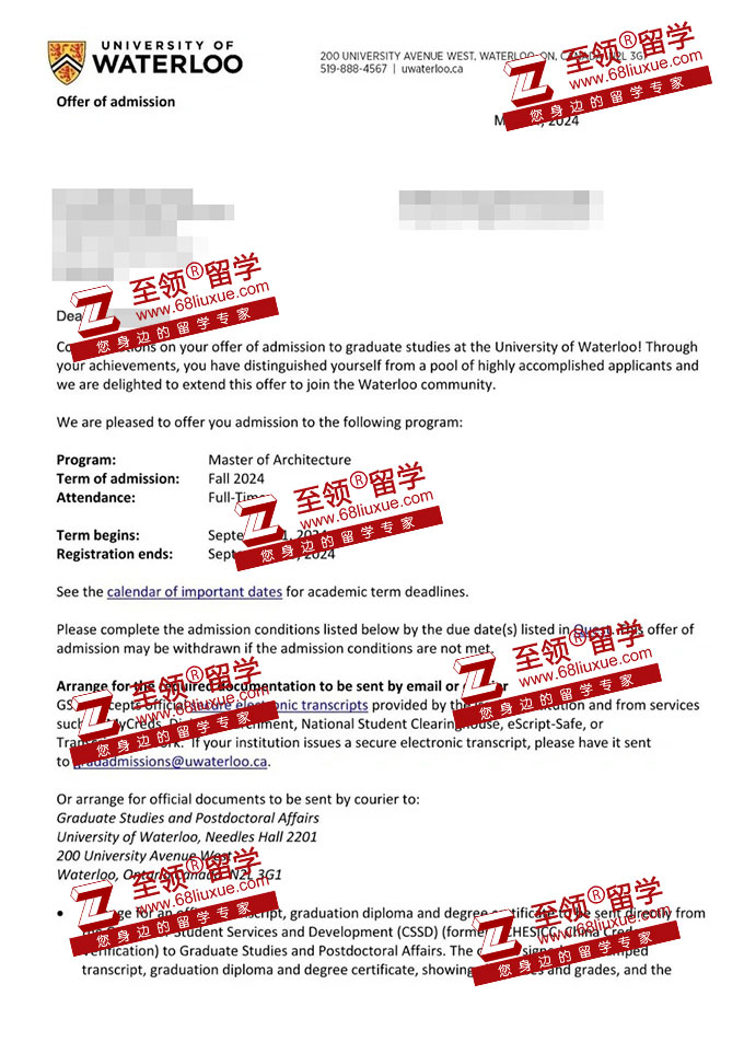 录取结果:University of Waterloo,Master of Architecture (MArch) 滑铁卢大学建筑学硕士录取