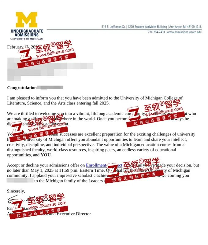录取结果:密歇根大学本科转学录取