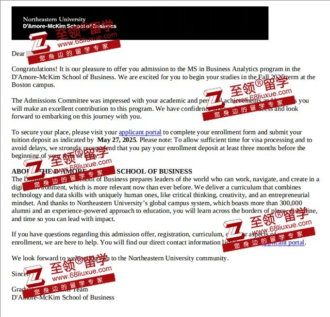 录取结果:东北大学 MS in Business Analytics录取,奖学金25%