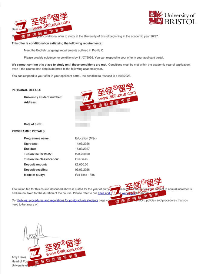 录取结果:布里斯托大学教育学硕士录取