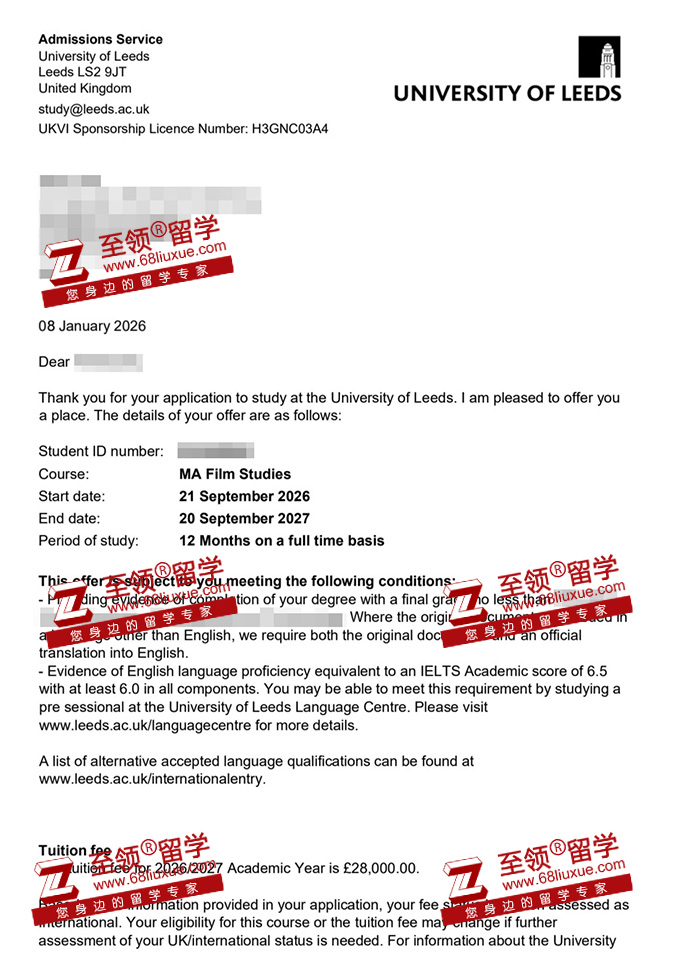 录取结果:利兹大学电影研究硕士录取