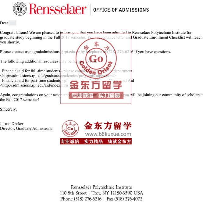 录取结果:Rensselaer Polytechinc Institute(伦斯勒理工学院), Master of Architecture I, advanced standing