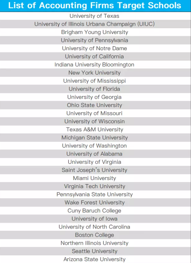 这些学校在四大工作的校友多,人脉广,在这几所学校就读的学生更容易与校友进行Networking,拿下四大Offer的几率也更高。