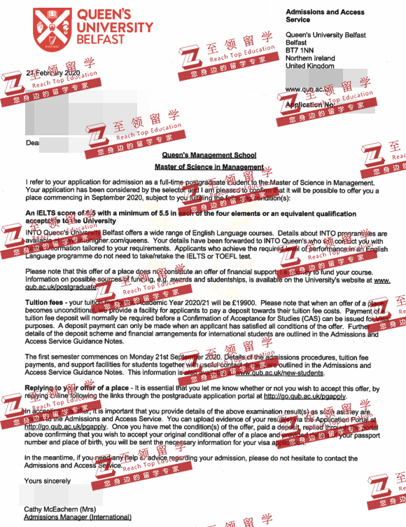 录取结果:Queen's University Belfast,MS in Management女王大学管理学硕士录取