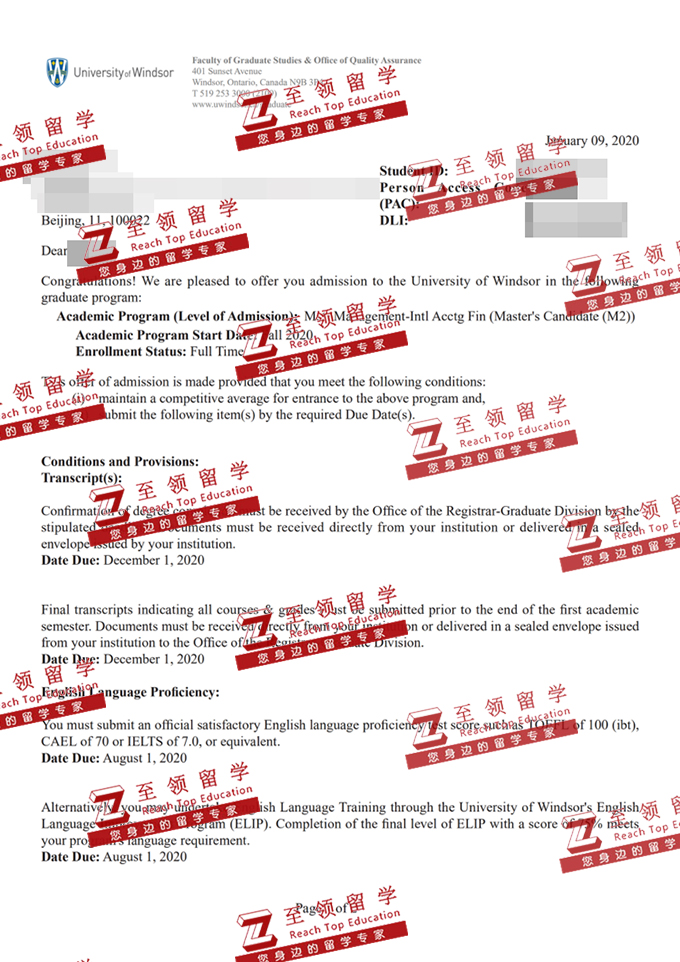 录取结果:University of Windsor,Master of Management温莎大学管理学硕士-国际会计与金融方向录取